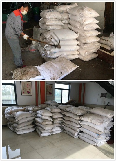 敲鹽是個體力活,一袋鹽100斤,又結(jié)的很硬,跟石頭一樣的,十分重。項目部安排了保潔隊長和管理員進(jìn)行了此項工作,一開始的處理工作非常困難,鹽的周邊堆滿了雜物,需要先清理雜物,鹽也堆的不整齊,都卡在縫里,又粘在一起,扒都扒不動。鹽經(jīng)過一個夏天都有些化掉,淌出來的水十分的滑,十分的危險,使工作開展更加困難。大家分工合作,一個人先把鹽翻出來,一個人用鋤頭把鹽敲碎,兩人再一起把鹽堆起來,碰到扒不動的就用棍子翹松了再弄,花了2天時間才將鹽都敲碎,大約敲了250多袋的鹽,工作量比較大。