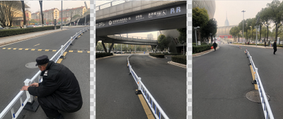 奧體中心室外區(qū)域范圍較大,大部分道路有序行車、規(guī)范停車管控難度大,行車主干道存在大量車輛亂停放的問題,為此高正集團(tuán)奧體中心物業(yè)項(xiàng)目部多次與奧體場(chǎng)館管理公司領(lǐng)導(dǎo)進(jìn)行溝通和方案討論,管理公司采購(gòu)了一大批路障護(hù)欄來進(jìn)行現(xiàn)場(chǎng)車輛分流管控。