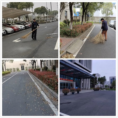 也是因為季節(jié)的轉(zhuǎn)變,新老更替,春風(fēng)吹來,枯葉開始飄落。地面上隨處可見的是飄落的枯葉,不僅影響到園區(qū)的環(huán)境,也影響到園區(qū)人們的心情,外圍保潔一個人的清掃能力已經(jīng)遠(yuǎn)遠(yuǎn)趕不上飄落樹葉的速度。為了加強(qiáng)項目環(huán)境衛(wèi)生,給大家創(chuàng)造一個潔凈,舒適的辦公環(huán)境,高正集團(tuán)物業(yè)主管主動帶領(lǐng)著所有當(dāng)班保安師傅一大早就過來幫忙掃落葉。大家都積極參與其中,人多力量大,瞬間就把地面上所有的落葉都清掃了,讓原先有落葉的地面變得格外干凈整潔。