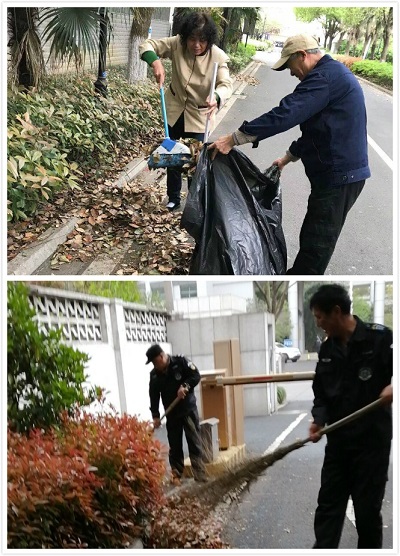 水務大廈坐落在武進延政大道上,外圍四周布滿了香樟樹,香樟樹枝盛葉茂,一到落葉季節(jié)就會有大批量的落葉紛紛落下,厚厚的像一層金黃色的被子。為了大樓的整體環(huán)境清潔美觀,為了不打擾甲方人員并給他們一個舒適的環(huán)境,物業(yè)每天早上在甲方上班之前把停車位一個一個清掃過去。笤帚一遍一遍的揮舞著,保潔員將地上的落葉掃成堆裝入垃圾袋運往垃圾站,一袋又一袋,一圈外圍掃下來已是滿身大汗。大掃帚小掃帚不知道掃壞了多少把,垃圾車不知道推壞了多少輛。
