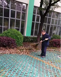 為美化工作環(huán)境,防止煙草項目火災(zāi)的發(fā)生,4月12日一大早,外圍保潔朱偉青上班就開始對煙草物流配送中心內(nèi)落葉進(jìn)行大面積清理,經(jīng)過兩個多小時的奮戰(zhàn),才把樹葉清掃干凈。雖然額外給員工增加了工作量,但保潔員卻一句抱怨的話都沒有,不怕苦與累而又默默無聞的精神值得我們每個人學(xué)習(xí)。