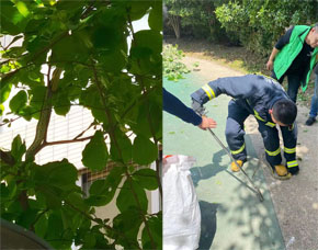 隨即我客服人員立即撥打119電話求助,在消防人員還未到場前,錢主管與維修師傅們就用彩帶拉起圍檔,防止有不了解現(xiàn)場情況的業(yè)主進(jìn)入“危險區(qū)域”。