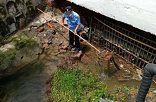 排水溝深且不利于清潔,我們保安保潔聯(lián)合配合進行清理,由于考慮到保潔員工年齡偏大,不利于打撈垃圾。為此管理人員安排保安利用長桿濾網(wǎng)進行打撈工作,把漂浮物礦泉水瓶進行清理打撈工作,同時為了進一步清潔到位,安保人員利用扶梯進入排水溝進行清潔,對此我們也進行相對應的安全措施,防止人員摔傷導致安全隱患。