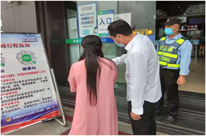 烈日炎炎下的他,總是一遍又一遍不厭其煩地重復(fù)這樣的喊話,耐心地幫助著過往顧客,遇到一些老年旅客不會(huì)操作的,熱心小伙就會(huì)立即上前安慰道:“大爺大媽,不用擔(dān)心,我來幫你們處理,疫情當(dāng)前,為了自己也為了大家的安全,請(qǐng)大家配合!謝謝大家。”,遇到使用老年機(jī)的旅客時(shí),他也會(huì)自發(fā)幫助他們發(fā)送短信來進(jìn)行查詢,讓旅客非常感動(dòng),連聲稱贊“熱心小伙真棒”。