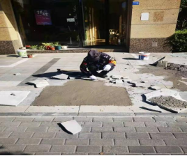 為了確保業(yè)主順暢安全出行,張建伍主動(dòng)跟管理員報(bào)備,并承諾會(huì)盡快完成破損路面的修補(bǔ)和平整工作。經(jīng)過前期的協(xié)調(diào)溝通和施工準(zhǔn)備,施工材料均已到位,張建伍先把地板磚撬起來,再用水泥澆灌鋪平,經(jīng)過一個(gè)下午的努力,路面已被修復(fù)平整,商鋪門前也恢復(fù)了正常通行。
