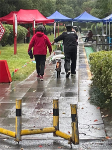 響應政策積極投入到工作中來,在做好自己的本職工作外,積極協(xié)助社區(qū)做好相應的防疫工作。小區(qū)被封后,小區(qū)嚴控本小區(qū)以外的人員進入,同時設立外賣、包裹臨接放點,實現(xiàn)業(yè)主無接觸式領取,在此期間我保安人員主動幫老人把物件送回家,幫著分菜裝袋,11月7日氣溫驟降,伴隨著狂風大雨,錢主管能帶領維修師傅配合社區(qū)加固安裝帳篷,調試燈光,為11月8日的第二次核酸檢測的順利開展做好保障工作。