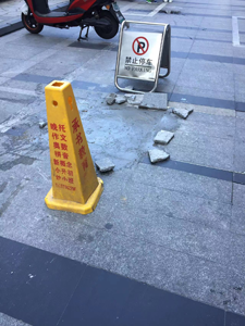 乾盛蘭庭維修徐師傅在日常巡查過(guò)程中發(fā)現(xiàn)商鋪12-107門(mén)前路面地板磚被車(chē)輛壓碎、缺失嚴(yán)重,不少業(yè)主在行進(jìn)途中容易絆倒。群眾利益無(wú)小事,為了確保業(yè)主能順暢安全出行,徐師傅決定對(duì)商鋪前的地板磚進(jìn)行專項(xiàng)整治工作。