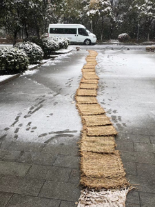 為了保證員工上下班路上的安全,常高速鄒區(qū)公司物業(yè)部的員工們大清早的就開始忙活起來,因為要趕在甲方員工來臨前,把路面的積雪清理干凈,一旦路面積雪太多,就會容易打滑,無論是車還是人,都會有很大的安全隱患。只見保潔阿姨一大早就拿起了鏟子,掃把,清掃路面的積雪,保安也拿來了一些防滑的墊子,在各個主干道路口開始鋪設,很快,幾個大門都鋪滿了墊子,積雪也清掃干凈了。