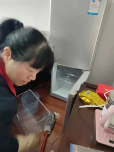 如本周一早晨,科室領(lǐng)導(dǎo)辦公室的冰箱要求去污除霜,保潔員芮秀鳳二話沒(méi)說(shuō),就放下手中的工作,幫助甲方領(lǐng)導(dǎo)完成除霜任務(wù)。為了保證安全,她先將電源切斷,才進(jìn)行整體的污漬處理,他對(duì)冰箱一層層清理擦抹,再處理污水,毫無(wú)怨言,直到把整個(gè)冰箱都清理干凈。