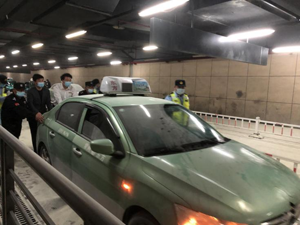 班長婁洋立即向項目經(jīng)理馬長友、副經(jīng)理劉源匯報并安排休息室內(nèi)的安保員,及時疏散通道內(nèi)圍觀群眾和車輛,協(xié)助司機進行前期處置。經(jīng)理馬長友聽到消息后,立即啟動北站火災處置應急預案,第一時間對蓄發(fā)入口進行封閉管理,同時展開救援排險。自燃車輛得到控制后,經(jīng)理又聯(lián)系維修班打開通道內(nèi)排風系統(tǒng),排出車道內(nèi)煙氣并組織保安員將車輛移至應急車道內(nèi),使車道能正常通行并幫助已驚慌失措的出租車駕駛員報警、報車險。