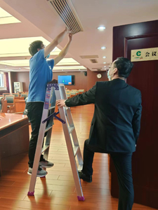 立夏時節(jié)已至,天氣比較炎熱,高正集團煙草項目經(jīng)理決定對整棟大樓的辦公室、會議室等空調(diào)濾網(wǎng)進行清洗。如果空調(diào)濾網(wǎng)長時間不洗,會導(dǎo)致制冷效果變差,并且濾網(wǎng)上的灰塵還含有軍團菌,嚴(yán)重的還可能引起肺部感染,所以每年空調(diào)濾網(wǎng)都要清洗兩次,今年也不例外,剛好甲方蔣工今天比較忙,就安排保安隊長王宏臣協(xié)助專業(yè)清洗人員一起,從十四層到一樓辦證廳,對空調(diào)濾網(wǎng)進行逐個清洗。