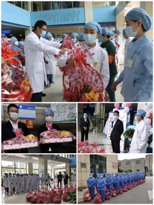 5月12日上午,在得到院領導的支持和同意后。由28位保潔員手捧果籃,步伐整齊,有條不紊,把果籃送到了門診一樓大廳,緊接著院領導和熊經(jīng)理上臺致詞。為護士們送上了祝福及果籃。疫情當前,感恩有你,感謝所有白衣天使們逆行而上,為守護群眾而戰(zhàn)。未來,我們亦將全力提供品質(zhì)服務,用心守護這群白衣天使們。