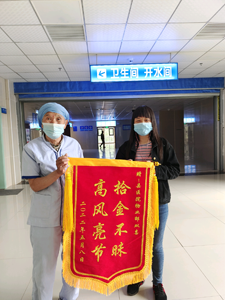 隔天上午,失主懷著一顆感恩的心送來了一面錦旗,上繡“高風(fēng)亮節(jié) 拾金不昧”八個字。雖然只是舉手之勞的事,卻充分展現(xiàn)了我們公司精神文明建設(shè)的良好風(fēng)貌,此舉也為公司助力、添彩。
