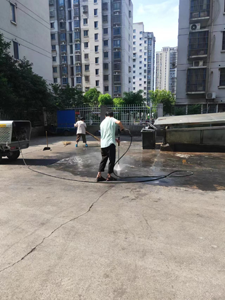 上午9點(diǎn)半,管理員便安排保潔隊(duì)長(zhǎng)和商鋪保潔到達(dá)19棟開始清洗工作。首先保潔隊(duì)長(zhǎng)打開高壓水槍車噴頭將垃圾桶周圍地面沖濕,另一邊保潔則用小桶配備好特定比例的燒堿水,等到保潔隊(duì)長(zhǎng)將地面充分濕潤(rùn)了,便將配備好的燒堿水也潑灑到濕潤(rùn)的地面上。浸泡約10分鐘后,保潔開始用大掃把清掃地面,經(jīng)過最后一次高壓水槍的沖洗,地面再也沒有難聞的異味,路過的業(yè)主都紛紛點(diǎn)贊。服務(wù)無(wú)止境,我們將繼續(xù)砥礪前行。