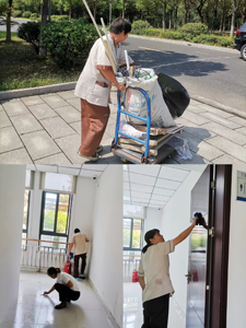說干就干,第二天一大早,馬經(jīng)理便叮囑保潔忙完手頭日常工作,利用碎片時(shí)間進(jìn)行小型開荒,首先把裝修工人留下的建筑垃圾一點(diǎn)點(diǎn)用小推車拖到垃圾房,然后用拖把把地面積灰進(jìn)行清理,再者就是用鏟刀把地面的頑固污跡鏟掉,最后就是日常清掃收尾工作(擦門窗、玻璃,地面干拖把再拖一遍),經(jīng)過半個(gè)小時(shí)的埋頭苦干,完美收工。這個(gè)高溫天下雖然大家都忙出了一身汗,但是得到客戶的贊許,那種勞動(dòng)成果被認(rèn)可的小欣喜溢于言表。
