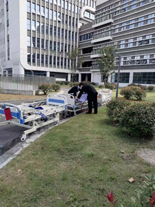 這天,曾經(jīng)理帶領(lǐng)我們把床位從三樓的重癥監(jiān)護室推到一樓空曠的地方,對幾張床位和床墊進行沖洗。首先他們把床下面的電機用塑料袋綁好,然后接上高壓水槍,對用餐架、防護欄桿、床頭以及床尾等地方進行全方位的沖洗,然后再把床墊也進行了一次性無死角的清洗,最后把病床和墊子放在太陽底下晾曬,通過紫外線來進行消毒,我們對床進行了一次全面而細(xì)致的消毒工作。最后在太陽落山之前把床推回了重癥監(jiān)護室。醫(yī)務(wù)工作者對我們的工作成果進行了肯定,床位變得煥然一新,也能更好的服務(wù)患者。