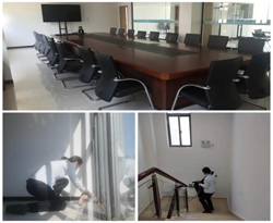 搬遷當(dāng)天,項(xiàng)目經(jīng)理耿進(jìn)林到達(dá)現(xiàn)場(chǎng)面試保潔人員,并對(duì)保潔人員進(jìn)行了專業(yè)的物業(yè)工作培訓(xùn),與甲方對(duì)接物業(yè)相關(guān)事宜,協(xié)助甲方安排綠植及害蟲消殺;維修主管現(xiàn)場(chǎng)對(duì)甲方的辦公桌、椅、柜進(jìn)行維修,安裝小廚寶、衛(wèi)生卷紙盒等其他零星小件;經(jīng)開樓主管協(xié)助保潔一起打掃衛(wèi)生,整理會(huì)議室、活動(dòng)室及廚房用品……工作很多、很細(xì)、很碎,大家卻依舊能夠做到有條不紊、井然有序。