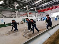 忙碌的一天開始了,接領(lǐng)導(dǎo)通知,低溫中心8號倉庫需要設(shè)備調(diào)整并大掃除,由于倉庫一直沒有啟用,里面設(shè)備雜亂,物品堆放也繁雜,諾大的倉庫突然間的清理給大家?guī)聿恍毫。項部緊急召集所有員工進(jìn)行合理分工,保安師傅們先將里面的設(shè)備重物根據(jù)要求調(diào)整擺放位置,外圍朱師傅做前期垃圾清理,保潔目班長帶領(lǐng)著所有保潔,進(jìn)行精細(xì)打掃。接著,由于外圍綠植修補(bǔ)回土,地面有不少泥土掉落,甚是影響院區(qū)美觀。保安師傅拿來水管,竹掃把,對黏貼在路面上的泥土進(jìn)行刷掃,沖洗。就這樣一遍又一遍的直到把路面沖洗的干干凈凈。