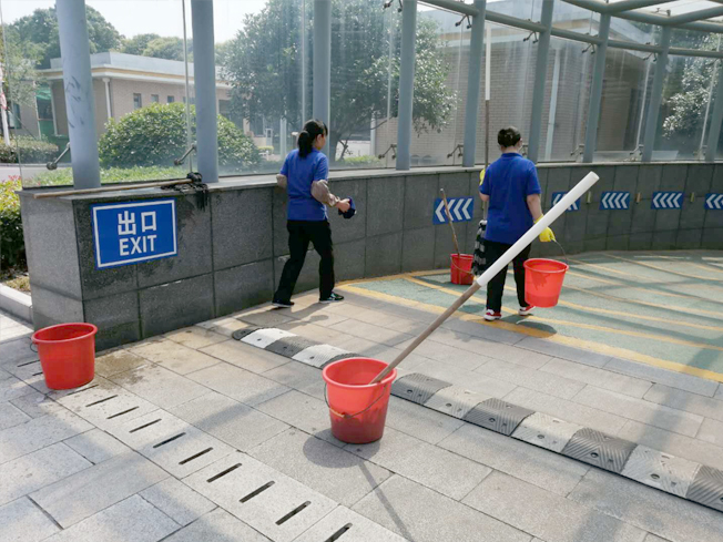 此次清掃工作量較大,保潔員們?cè)谧龊帽韭毠ぷ魍猓诒嵵鞴艿膸ьI(lǐng)下開展清掃活動(dòng),大家手拿水桶、抹布及拖把,全身心投入到大掃除中,齊心協(xié)力,干的熱火朝天,顧不上汗?jié)竦囊陆,不放過任何一個(gè)衛(wèi)生死角,經(jīng)過一番努力,地下車庫通道煥然一新。