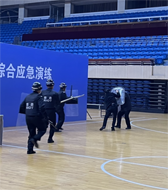 根據(jù)演練方案、人員安排和物資配備,演練小組提前準(zhǔn)備好了對講機(jī)、假刀具、鋼盔、防刺服、防暴盾牌、鋼叉、防暴棍、和指示牌等物資,并由公司員工分飾劫匪,反恐組成員及游客等。上午十點(diǎn)開始,巡邏保安發(fā)現(xiàn)劫持游客搶劫現(xiàn)金的劫匪,立即撥打110報(bào)警電話,并迅速用對講機(jī)向保安主管報(bào)道,請求協(xié)助現(xiàn)場處理,并阻止其他游客靠近。館長在趕往處理的途中,迅速聯(lián)系和調(diào)動反恐組成員趕往劫持事件發(fā)生的體育館大廳,進(jìn)行現(xiàn)場處理。到達(dá)現(xiàn)場后,我方工作人員和劫匪形成僵持局面,保安主管利用對話和談判,轉(zhuǎn)移劫匪注意力,盡力拖延時間,直至警察趕到,再將現(xiàn)場交由公安機(jī)關(guān)處理,至此演習(xí)結(jié)束。
