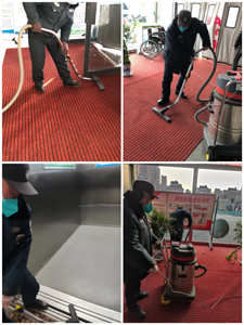 每逢周日下午四點(diǎn)左右,保安胡騎隊(duì)長(zhǎng)就抽調(diào)老戴前往現(xiàn)場(chǎng)進(jìn)行地毯除塵。尤其在夏季毛絮飛舞時(shí)節(jié),他們一周會(huì)進(jìn)行兩到三次的地毯吸塵計(jì)劃。今天下午四點(diǎn),趁著換崗休息時(shí)間,兩個(gè)人從東門衛(wèi)推出吸塵器,先從北門開(kāi)始,插上電源,一個(gè)負(fù)責(zé)推、一個(gè)負(fù)責(zé)吸,工作有條不紊、不慌不亂,地毯有嘔吐物的,就拎水刷,有大垃圾就先掃后吸,把地毯里面的灰塵毛絮清理的干干凈凈才轉(zhuǎn)移到下一個(gè)地方。在住院部電梯廳吸完好地毯后,電梯溝槽灰塵也同樣來(lái)回清理一遍。在他們辛勤勞動(dòng)下,整個(gè)一樓變得更加敞亮干凈爽目。