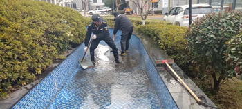 說(shuō)干就干,項(xiàng)目主管組織員工拿上刷子、穿上雨靴跳進(jìn)池子,池子里水位較高,我保安員們先把池子里的水放掉,再倒入清潔劑用刷子一點(diǎn)點(diǎn)地清洗,清洗完畢后再用抹布仔細(xì)擦拭。池子很大,每個(gè)邊邊角角都必須清理到位,保安員們一塊塊仔細(xì)清刷,不放過(guò)任何一個(gè)角落,最后在用干凈的水把所有污漬沖洗掉,再用抹布把邊邊角角仔細(xì)擦拭。就這樣經(jīng)過(guò)兩個(gè)多小時(shí)的辛苦打磨,水池被我們洗得锃光瓦亮,看著這么干凈的池子,我們所有付出的辛勞都是值得的。