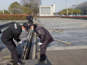 在保安主管楊金朝的帶領(lǐng)下,南一路旁兩個噴泉池的衛(wèi)生清潔作為本周重點(diǎn)工作,拿到分配任務(wù)后,大家分工協(xié)作,清潔工作有序開展。清理過程中,安保員先使用工具把水池內(nèi)的下水通道蓋打開,隨后也緊跟著把漬泥雜物取出進(jìn)行沖洗,緊接著,著手清理水池里面殘留的垃圾、淤泥等贓物。噴泉池由于長時間不使用,污垢、水垢都堆積在池底和池壁上。保安員們先后用清潔球、長刷子、清潔劑等多種工具,對池底進(jìn)行擦拭清潔。大家相互配合,不畏臟臭,積極投入到清理水池工作中。