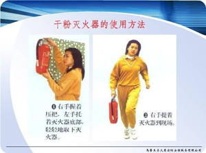 消防安全培訓(xùn)還有一項非常重要的技能培訓(xùn),項目部所有員工主要學(xué)習(xí)了干粉滅火器的使用方法,“一提、二拔、三對準”是我們學(xué)習(xí)的口訣,所謂一提就是一手提起滅火器,二拔就是拔掉保險銷、三對準就是站在火源上風頭2米處對準火源根部。