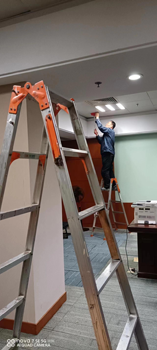 巡查組的辦公點安排在26樓的一個辦公室,當初進駐的時候項目部就已經(jīng)按照甲方要求把辦公室邊邊角角打理得干干凈凈,可是入駐一段時間后,大家發(fā)現(xiàn)每到大風天時,天花板就會咔咔作響。后來發(fā)現(xiàn)是因為十幾年的天花板經(jīng)過熱脹冷縮已經(jīng)有點松動變形了,于是維修師傅們等到巡查組工作人員下班后,就開展連夜工作,把天花板一塊一塊地拆下來重新整形加固安裝。經(jīng)過一個晚上的努力,所有天花板都已加固完成,恢復平整,保潔員隨后再用抹布擦拭干凈,干活留下的灰塵也都清理地干干凈凈,保證辦公環(huán)境的整潔舒適。