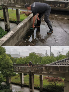 正值黃梅季節(jié),天空變得陰沉沉的,大雨隨時(shí)都有可能降臨。周末下了傾盆大雨,常高速項(xiàng)目天臺(tái)因有落葉沉積,經(jīng)常排水過程中將落葉沖至排水口,把排水口沖刷得堵塞不通。雨水不及時(shí)疏通排掉,對(duì)我們的平臺(tái)防水性會(huì)有很大的威脅性,為了解決這個(gè)問題,我們保安隊(duì)長老楊緊急行動(dòng)。通過檢查排水口和周圍的區(qū)域,排除了潛在的安全隱患后,及時(shí)用棍子疏通了排水口,確保雨水能夠順利排出,沒有造成任何水患。