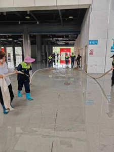 因為參展商眾多,現(xiàn)場異常忙碌。一家參展商在布展過程中,鏟車不小心撞到了消防栓,消防栓內(nèi)的高壓自來水頃刻間激射而出,短短十幾秒,展館現(xiàn)場就一片汪洋。得知這一情況后,項目經(jīng)理周慶珍立即帶領(lǐng)主管,號召所有在崗保安和保潔員,緊急投入到現(xiàn)場的搶險工作中。周經(jīng)理一邊組織人員搶修受損消防栓,用鐵皮板阻擋水流噴射方向;一邊利用一切可用的工具進(jìn)行排水。