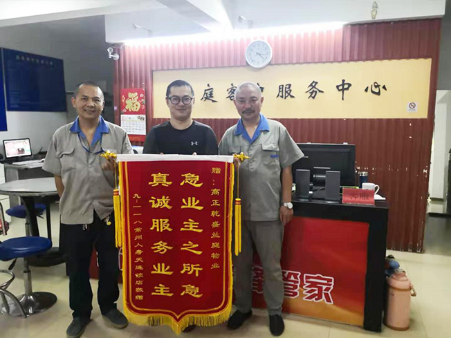 商鋪業(yè)主看到兩位師傅這樣為業(yè)主服務(wù)都感動不已,一致為維修師傅點贊,9-118業(yè)主更是寫了感謝信表達(dá)自己的感激之情,之后還做了一面錦旗,急業(yè)主所急,真誠服務(wù)業(yè)主,我們當(dāng)即表示謝謝業(yè)主對我們的肯定。