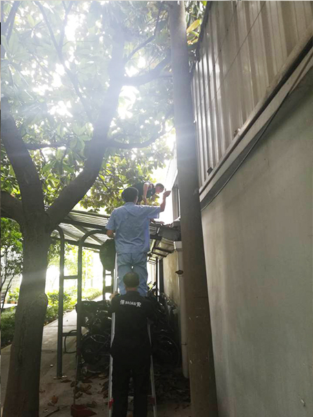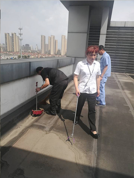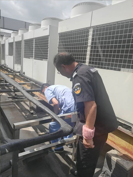 特檢院主管協(xié)同維修、保安隊長和保潔班長先對大樓樓頂廣告燈和下水道進(jìn)行檢查,園區(qū)電動車彩鋼棚牢固度檢查,臨近下班又對整個園區(qū)大樓窗戶進(jìn)行檢查,對發(fā)現(xiàn)的安全隱患及時整改。對整個園區(qū)下水道進(jìn)行疏通,車棚頂部樹葉清理,地下車庫污水系統(tǒng)調(diào)試。