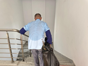 盡管困難重重,但大家沒(méi)有退縮。保潔員們采取了一系列措施來(lái)確保清理工作的順利進(jìn)行。首先,他們利用工具將淤泥和雜草鏟出,并將其裝進(jìn)垃圾袋中。然后,保潔一趟又一趟將垃圾袋背運(yùn)至電梯樓道處。在這個(gè)過(guò)程中,管理員也加入了清理的隊(duì)伍,加快清理的步伐。