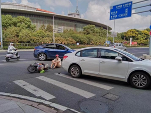 近日,在奧體中心2號(hào)門崗的出入口附近,發(fā)生了一起交通事故。一輛準(zhǔn)備從2號(hào)門崗進(jìn)入奧體中心停車場的白色小汽車在右拐進(jìn)入通道的時(shí)候,與一輛電動(dòng)車駕駛?cè)藛T發(fā)生碰撞,造成電動(dòng)車騎行人員倒地受傷。