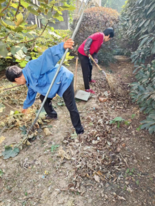上午9點開始,南北區(qū)域的保潔在保潔主管的帶領(lǐng)下正式開展清掃工作。因小區(qū)綠化面積較大,保潔主管安排就近兩區(qū)域的保潔兩兩一組組隊開展工作。先是保潔拿著耙子把圍在灌木叢中的落葉扒出來,再用掃把把落葉都掃成一堆一堆的,最后拿大袋子把落葉裝起來由保潔班長清運到垃圾堆放點內(nèi),從上午9點到下午4點,保潔們一直重復著耙落葉、掃落葉、裝落葉和運落葉的動作,每個人都干的汗流浹背,最終在保潔班長清運到15車時圓滿結(jié)束?粗兊谜麧嵡逅木G化帶,瞬間覺得付出的汗水都是值得了。