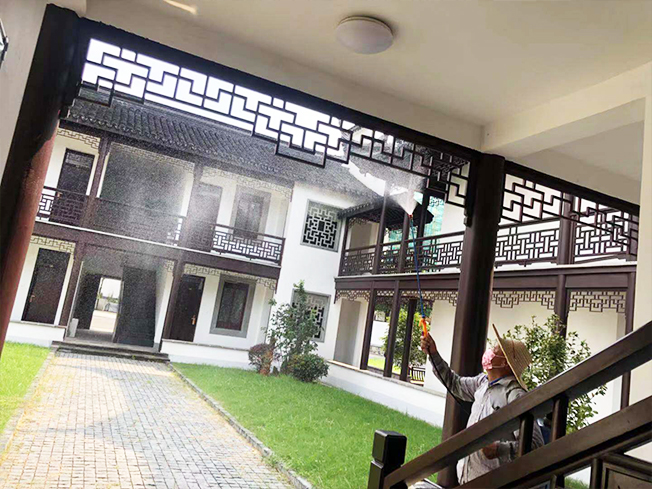 水利投資項目的古建筑辦公區(qū)由于建筑的特殊性,近期螞蟻較多,每天噴灑殺蟲劑效果并不理想。于是請教了城防處的趙經(jīng)理,大概講述了現(xiàn)場情況,趙經(jīng)理就聯(lián)系了他項目的綠化外包單位,來水投項目做援助。