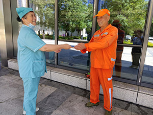 近日,王愛英師傅在兒科門診清潔玻璃時看見一部手機放在窗臺下,環(huán)顧四周無人來拿,她立即將情況上報主管,主管讓王愛英師傅保管好手機原地等待失主,若長時間無人認領再把手機上交至服務臺。隨后,她便一邊工作一邊等待失主,大概過了三十分鐘左右,失主來醫(yī)院領取。在主管的陪同下,王愛英確認來人為失主本人,隨后便把手機歸還給失主,失主對王愛英師傅拾金不昧的行為表示萬分感謝。