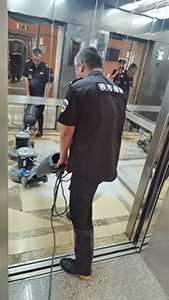 為打造一個更好的生活工作環(huán)境,水務大廈項目管理部決定利用周末時間對各電梯的轎廂大理石進行拋光打蠟。首先保安員先把大理石表面雜物和灰塵清理干凈,使用中性洗滌劑清洗地面上的污漬,再用抹布將多余水分吸干,因為潮濕的表面是不能進行打蠟的,需要用干抹布加速地面干燥過程。等地面完全干燥后,再用專業(yè)的大理石拋光蠟均勻地涂在大理石表面,用專門的拋光機進行拋光,一直一遍一遍的循環(huán)動作,直到表面光亮整潔。