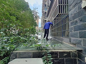 小區(qū)建造前期為了美觀,小區(qū)單元門(mén)上雨棚都為玻璃制作,隨著時(shí)間的推移,上面常有落葉和高空拋物垃圾堆積,嚴(yán)重影響業(yè)主的觀感,為了給業(yè)主創(chuàng)造更加舒適、優(yōu)美的生活環(huán)境,近日,項(xiàng)目保潔隊(duì)長(zhǎng)不顧高空作業(yè)危險(xiǎn),帶領(lǐng)全體保潔員清掃單元門(mén)口玻璃頂棚。清掃現(xiàn)場(chǎng),只見(jiàn)保潔隊(duì)長(zhǎng)借助外設(shè)的管道,攀到小車(chē)庫(kù)頂棚上,用大掃把將雨棚上的垃圾一一掃落下來(lái),然后用水槍頭沖洗一遍,將外墻縫隙中散落的垃圾都收拾了個(gè)干干凈凈,最終玻璃頂棚恢復(fù)了明亮。