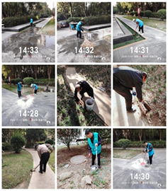 盡管寒風瑟瑟,天氣漸寒,但保潔人員依然堅守崗位,干勁滿滿,在大家齊心協(xié)力、精誠合作之下,園區(qū)內的落葉及殘枝得到了有效清理,后續(xù)的日常循環(huán)清潔工作也在有條不紊地進行中,落葉隨落隨清,保持小區(qū)的美觀與井然有序。