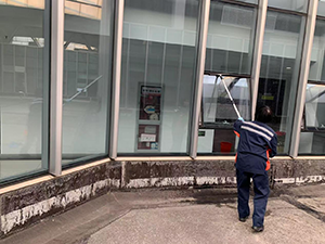 為給客戶打造一個明亮、舒適的辦公環(huán)境,高鐵北站辦公用房保潔員蔣亞娟利用休息時間,對辦公用房的走廊落地玻璃進行了全面清洗。