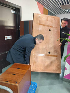 當(dāng)天,1號(hào)樓常州新聞中心幾位員工因需要搬運(yùn)大型家具,正為搬運(yùn)難題發(fā)愁。物業(yè)安保人員朱志國(guó)在巡邏過(guò)程中了解到這一情況后,立即向物業(yè)匯報(bào),并主動(dòng)提出幫忙。隨后,在物業(yè)工作人員的組織下,多名安保人員和物業(yè)工作人員一同前往員工辦公室中。