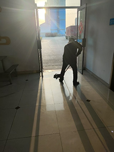 當(dāng)天,曹師傅在日常巡邏時(shí),發(fā)現(xiàn)大樓入口處地面有一灘水漬。考慮到此時(shí)人員往來(lái)頻繁,若不及時(shí)處理,極易導(dǎo)致人員滑倒受傷。曹師傅沒(méi)有絲毫猶豫,迅速?gòu)谋0彩夷脕?lái)拖把。