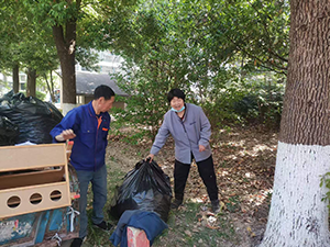 早上6點半開始,保潔們手持掃帚、簸箕等工具,穿梭在小區(qū)的各個角落,清掃著道路上、綠化帶里、草坪上的落葉。為了提高清掃效率,他們先是將散落的落葉集中到一起,最后拿大袋子把落葉裝起來由保潔班長清運到垃圾堆放點內(nèi)。對于一些難以清掃的角落,保潔人員們更是不辭辛勞,彎腰用手將落葉一一拾起,確保不留任何衛(wèi)生死角。保潔們一直重復(fù)著耙落葉、掃落葉、裝落葉和運落葉的動作,每個人都干得汗流浹背,最終在保潔班長清運到13車時圓滿結(jié)束。