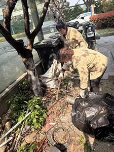 她們身著統(tǒng)一的工作服,戴著口罩和手套,不怕臟、不怕累,認(rèn)真地?fù)焓暗厣系睦,將大件雜物搬進(jìn)垃圾袋,再把細(xì)小的垃圾掃入簸箕。經(jīng)過幾個小時的努力,飯?zhí)煤箝T變得干凈整潔,地面露出了原本的面貌,周邊環(huán)境也煥然一新。