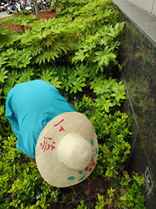 他們手持垃圾袋,穿梭于花壇之間,仔細(xì)搜尋每一個(gè)煙頭、每一片紙屑。哪怕是藏在花叢深處的垃圾,也逃不過(guò)他們敏銳的目光。遇到難以撿起的垃圾,保潔員們就蹲下身子,用手一點(diǎn)點(diǎn)摳出。