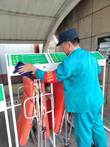 保潔員們手持干凈的抹布,認(rèn)真地擦拭著每一個(gè)輪椅架。無(wú)論是金屬部件上的細(xì)微污漬,還是角落處的灰塵,都逃不過(guò)他們的細(xì)心。他們蹲下身子,專(zhuān)注地擦拭著輪椅架的扶手、支架,動(dòng)作輕柔而熟練,仿佛在對(duì)待一件珍貴的物品。