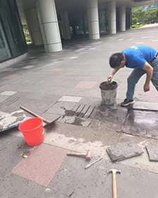 雨季過后,園區(qū)多處地磚出現松動、碎裂等問題,凹凸不平的地面不僅影響環(huán)境美觀,更暗藏絆倒風險。項目安保部在日常巡查中發(fā)現這一情況后,迅速組建專項修復團隊,啟動地面安全隱患排查計劃,為園區(qū)“足下安全”保駕護航。