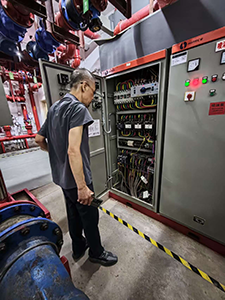 本次檢查水泵房、消控室、保安室、崗?fù)さ扔秒婈P(guān)鍵設(shè)備。在水泵房,專業(yè)電工對配電柜內(nèi)的開關(guān)、接頭等部位進(jìn)行測溫,精準(zhǔn)排查潛在的過熱隱患;在消控室,仔細(xì)檢查線路連接是否牢固,是否存在絕緣層老化、破損現(xiàn)象。在保安室崗?fù)z查用電設(shè)備的安全,為應(yīng)對高溫用電挑戰(zhàn),物業(yè)完成隱患的排查。消防設(shè)施也在此次檢查范圍內(nèi),檢查小組對滅火器的壓力、有效期,消防栓的水壓、配件完整性等進(jìn)行了全面檢查,確保消防設(shè)備時刻處于良好的備戰(zhàn)狀態(tài)。